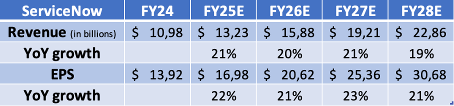 As for my projections, the strong Q2 results and guidance urge me to raise my revenue estimate slightly, now pointing to 20.5% YoY growth in 2025. Furthermore, NOW’s strong margin performance allows me to increase my EPS estimate by a solid margin, now pointing to 22% YoY growth, up from a prior 19%.