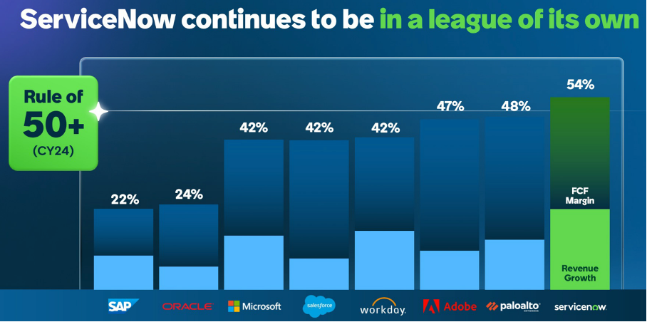 Combine this with an expected FY25 FCF margin of 32%, and NOW should deliver another year with Rule of 50 metrics (52), which is exceptional.