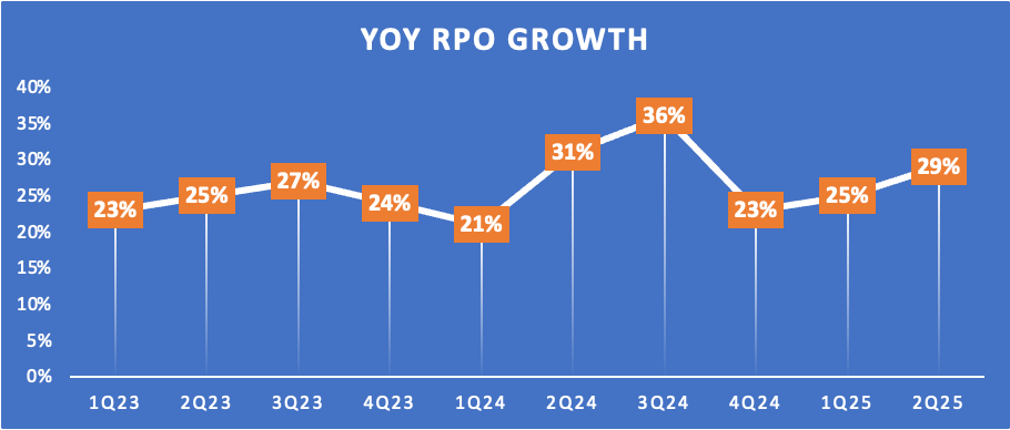 We saw similarly strong performance in RPO, which reached $24 billion by the end of Q2, up 26% YoY in constant currency and 29% on a reported basis. This beat the midpoint of guidance by 200 basis points and marked a sequential acceleration, signaling robust, broad-based demand.